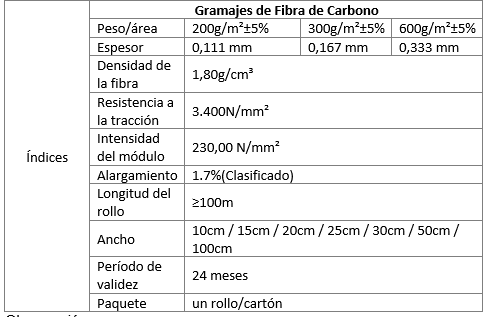 Fibra de carbono en manta (tejido) usada para reforzamiento estructural de columnas, vigas o losas de concreto, trabaja a tracción, su adherencia al elemento estructural se realiza con adhesivo epóxico para un alto rendimiento. Adecuado para aumentar la resistencia a las cargas de trabajo de la edificación, para cambiar el uso de la edificación, envejecimiento de materiales o para la resistencia del concreto que este por debajo del valor de diseño, tratamiento de grietas de estructuras, reparación de la sección del elemento en mal estado etc.